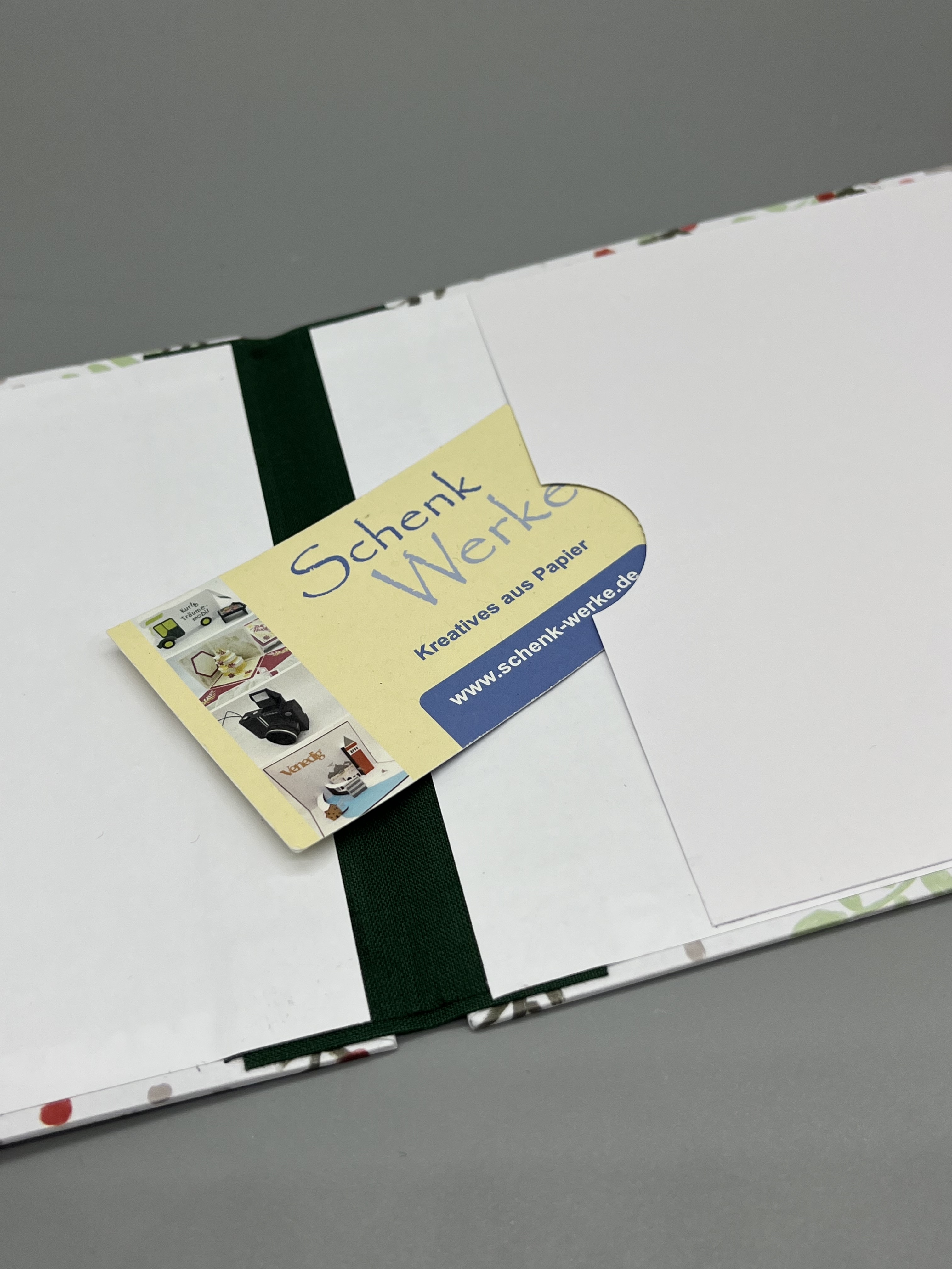 Dieses Büchlein ist mit viel Liebe handgebunden. Ich habe dafür feste Graupappe, ein hochwertiges, englisches Bezugspapier und grünes Buchleinen genutzt.