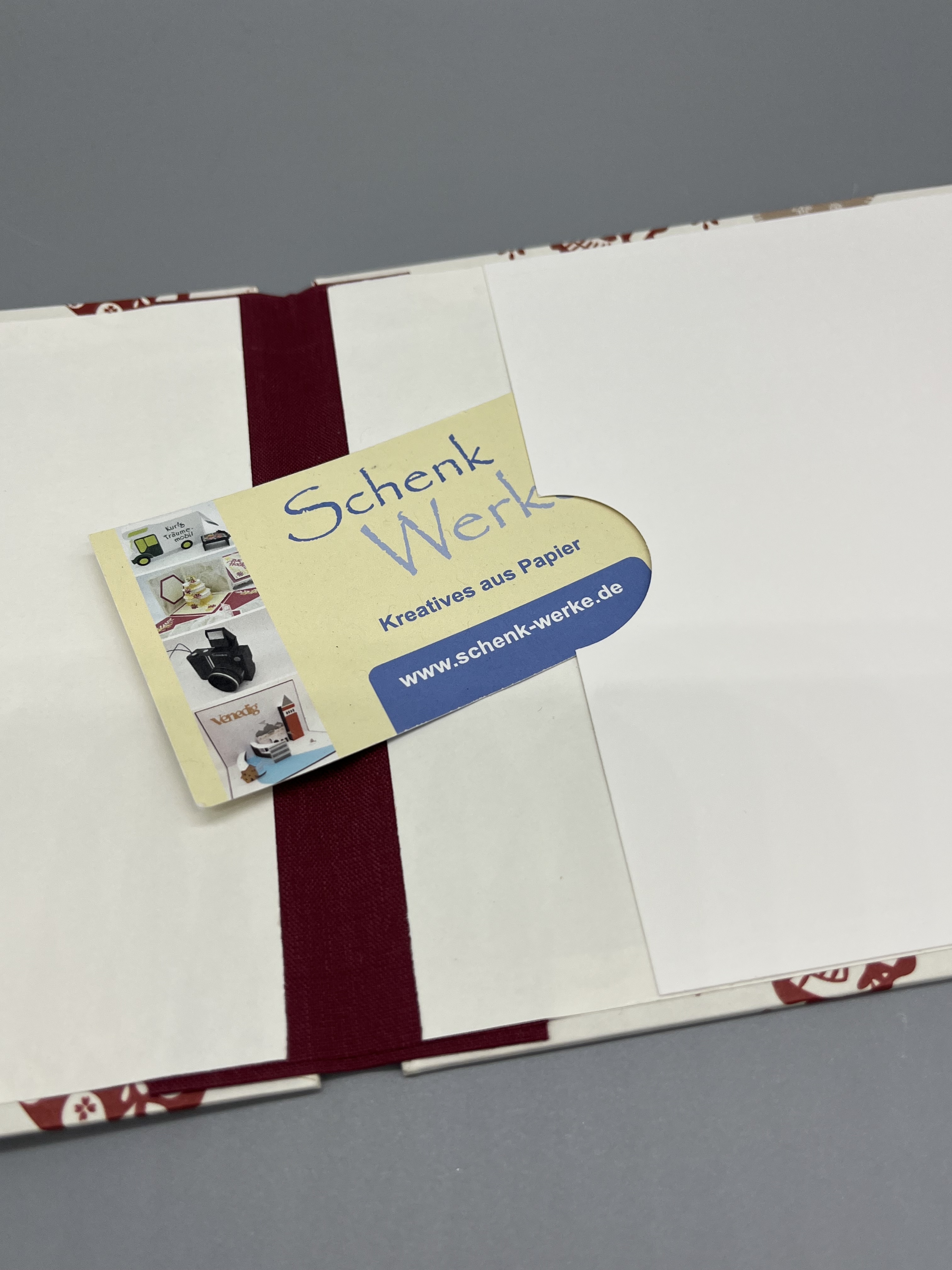 Dieses Büchlein ist mit viel Liebe handgebunden. Ich habe dafür feste Graupappe, ein hochwertiges, italienisches Bezugspapier und rotes Buchleinen genutzt.