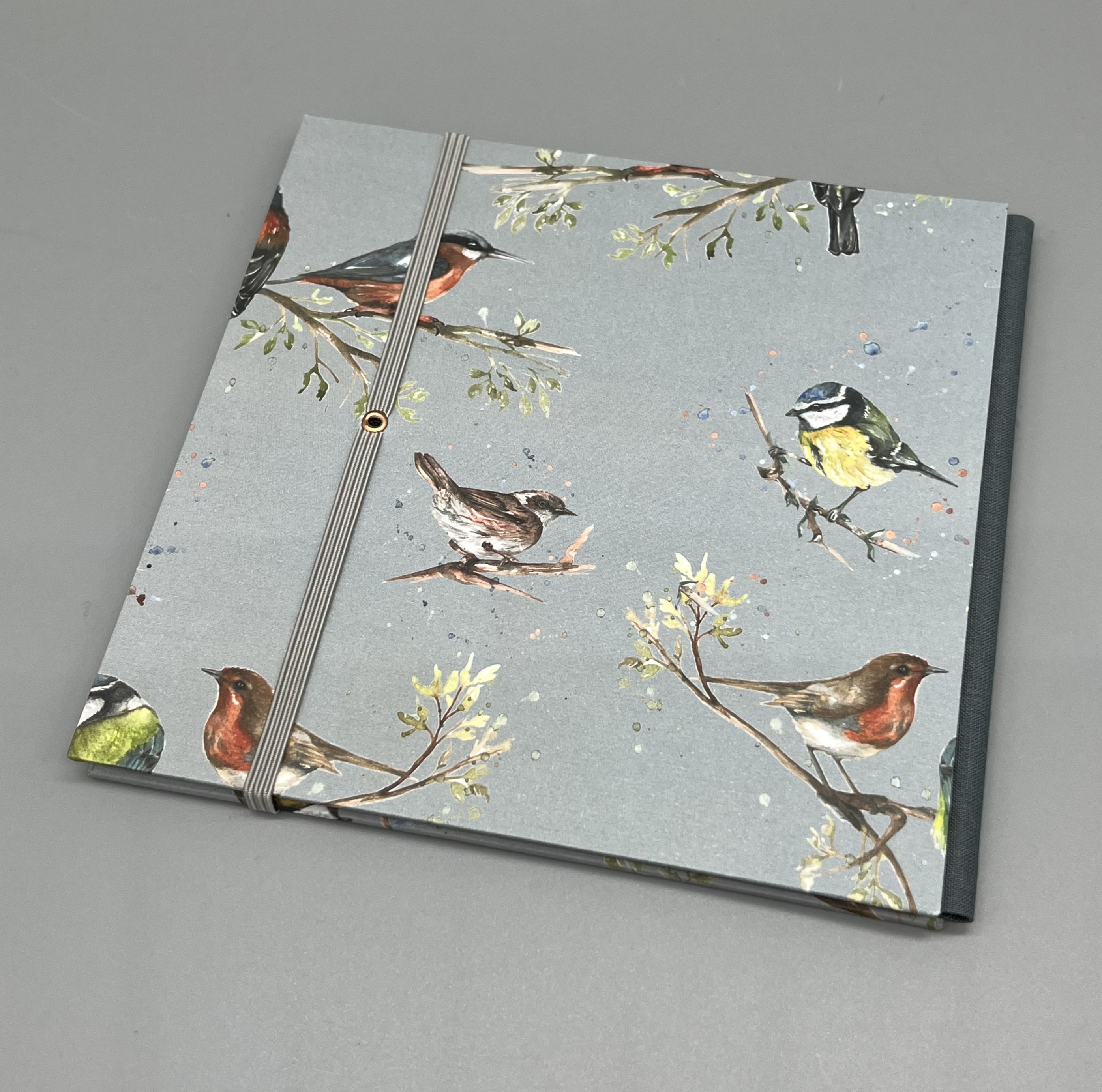 Dieses Büchlein ist mit viel Liebe handgebunden. Ich habe dafür feste Graupappe, ein hochwertiges, englisches Bezugspapier und graues Buchleinen genutzt.