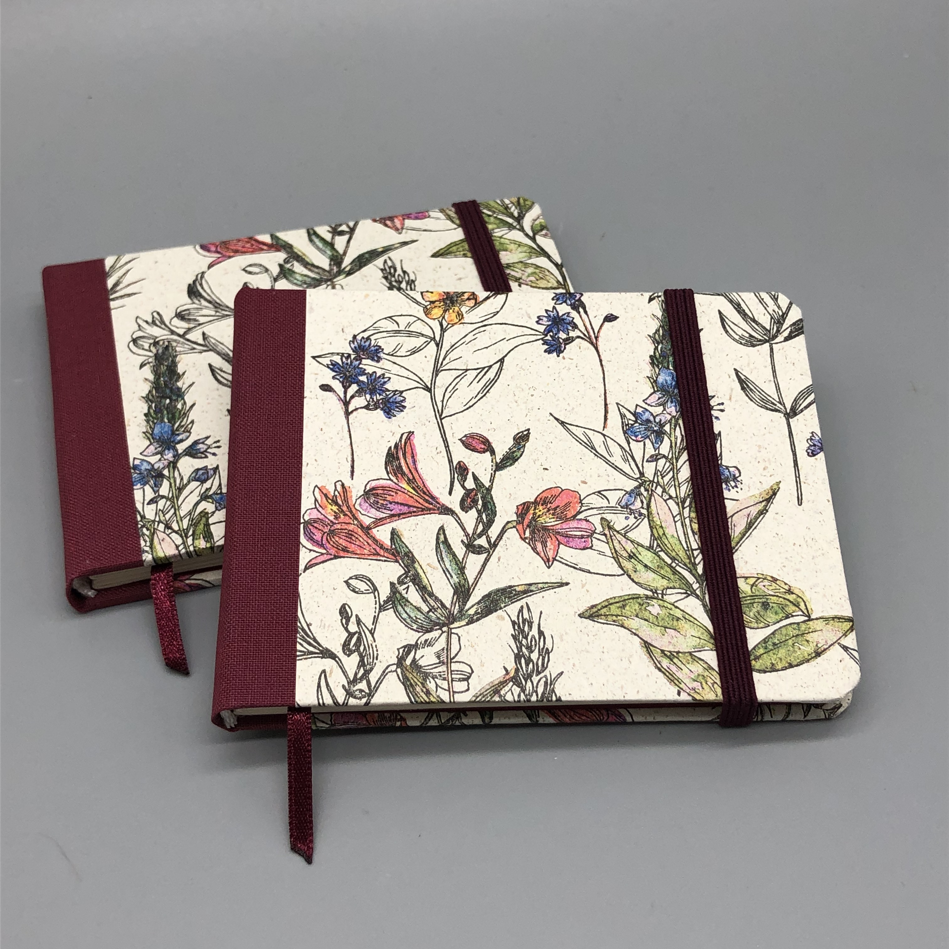 Das Notizbuch habe ich bezogen mit Graspapier mit 30% Gras- und 70% Recyclinganteil. Es hat dadurch eine leicht rauhe Oberfläche.