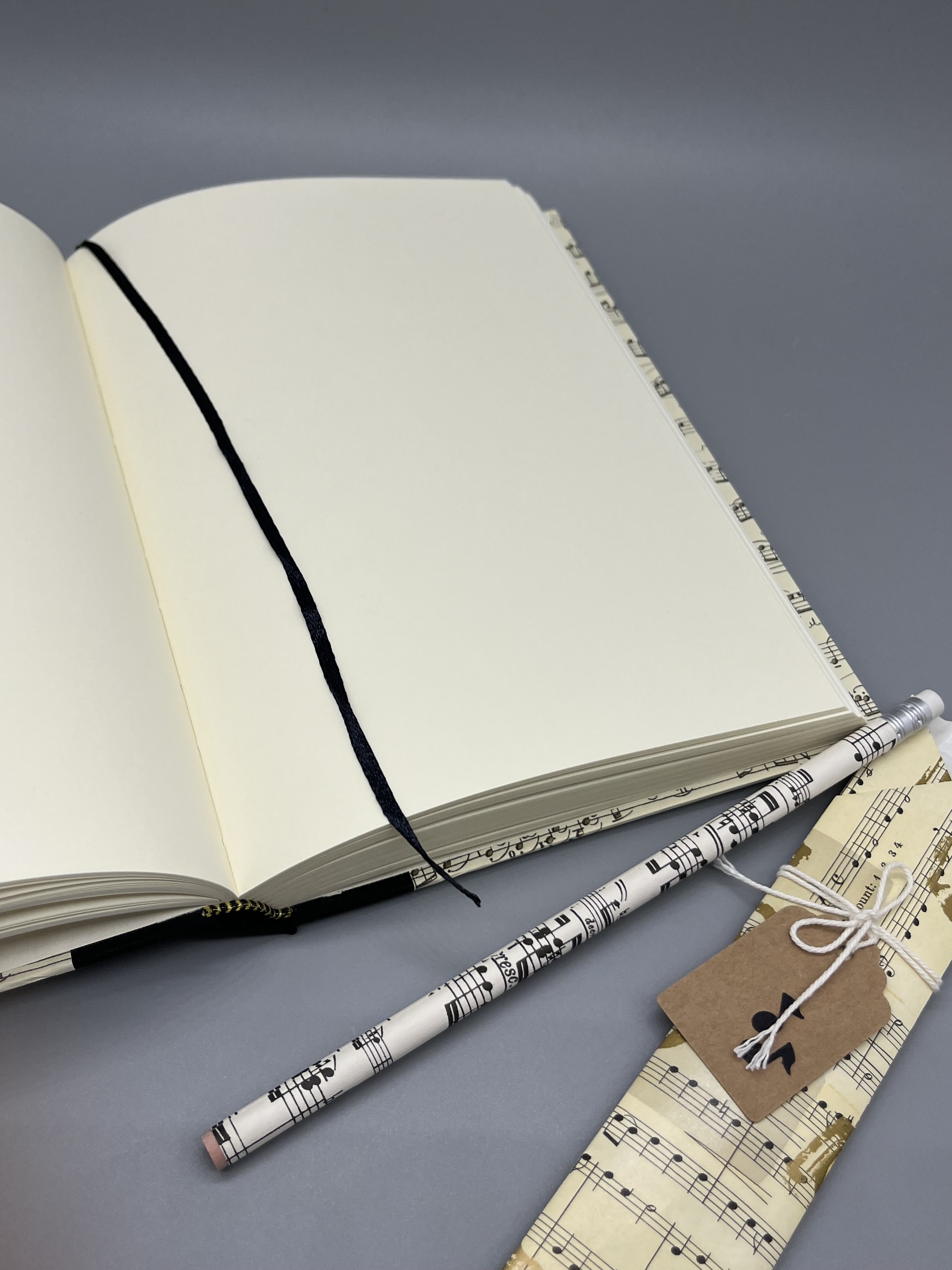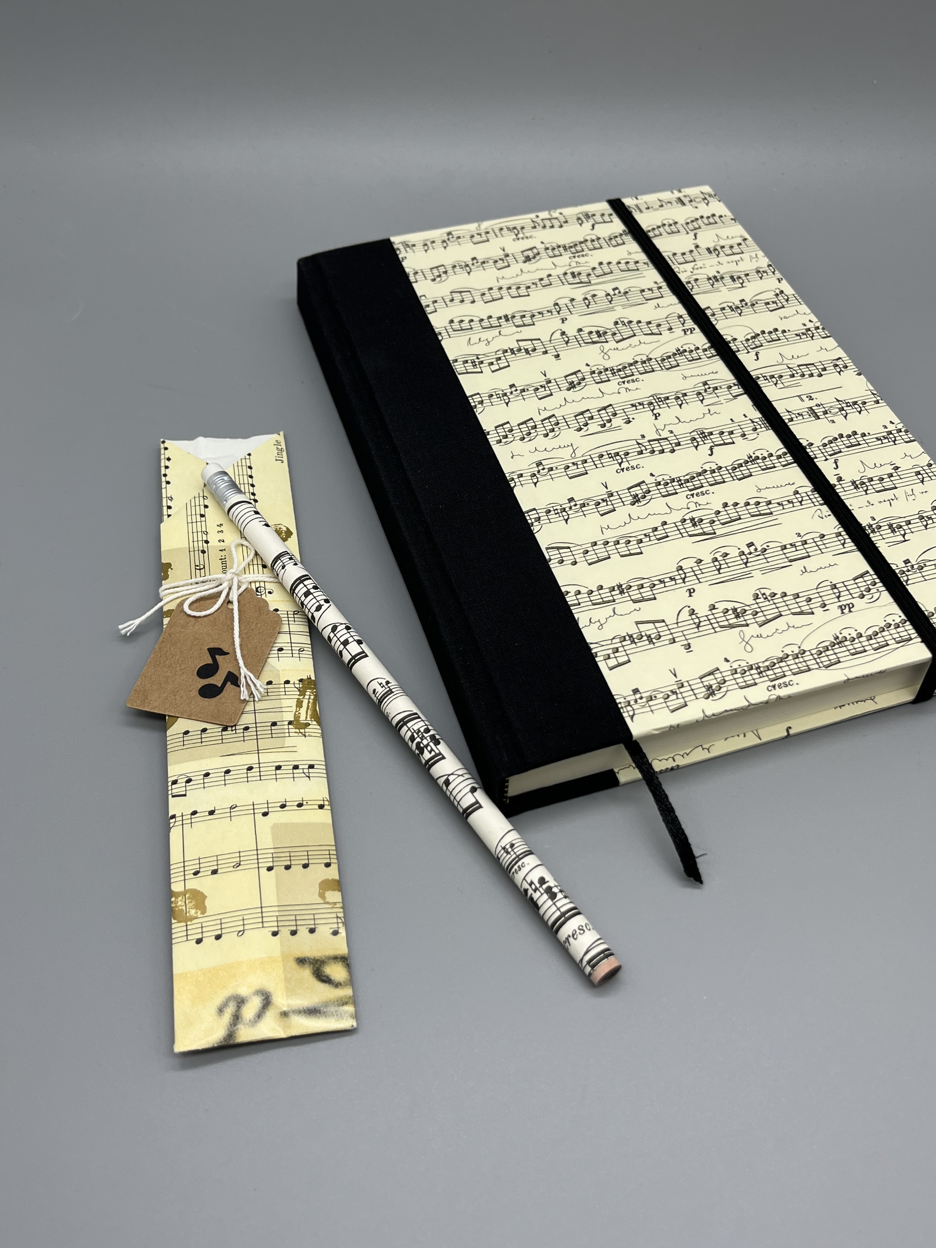 Schau Dir gerne auch die anderen Notizbücher im Shop an! Die Auswahl an Formaten, Bindungen, Farben und Designs ist groß... Auch das Bezugspapier Partitur habe ich bei vielen weiteren Artikeln verwendet. Du kannst es übrigens auch als Geschenkpapier kaufen.