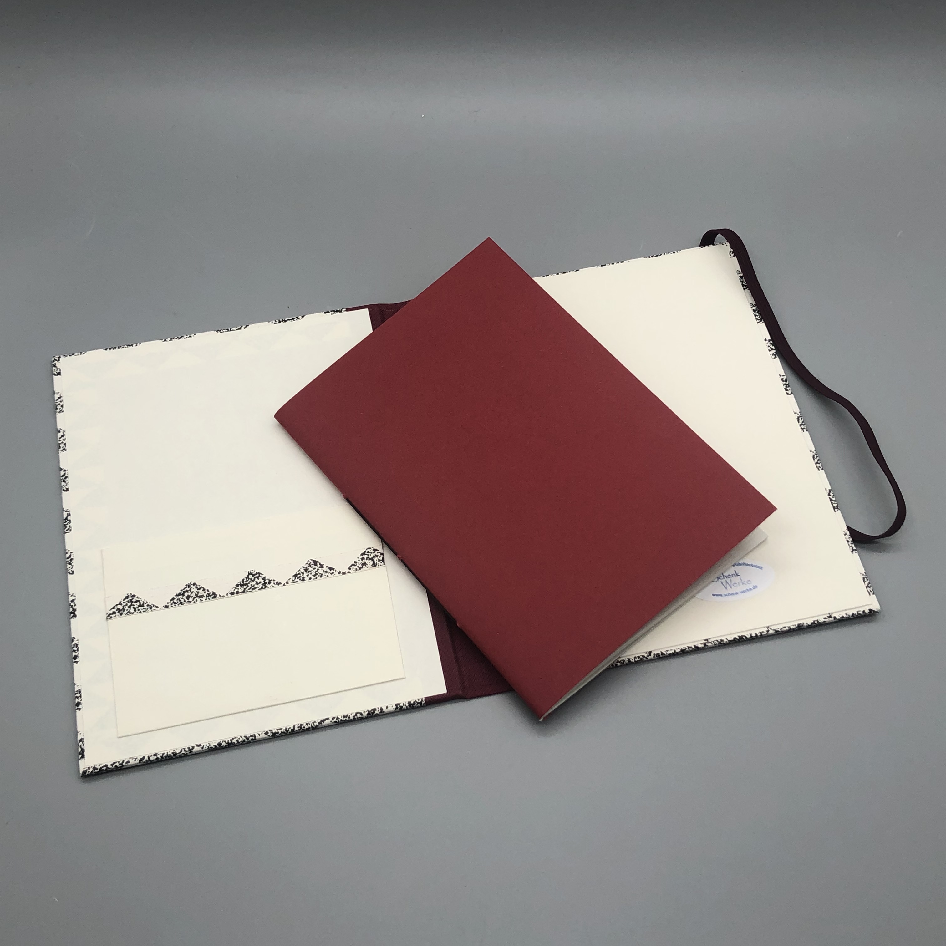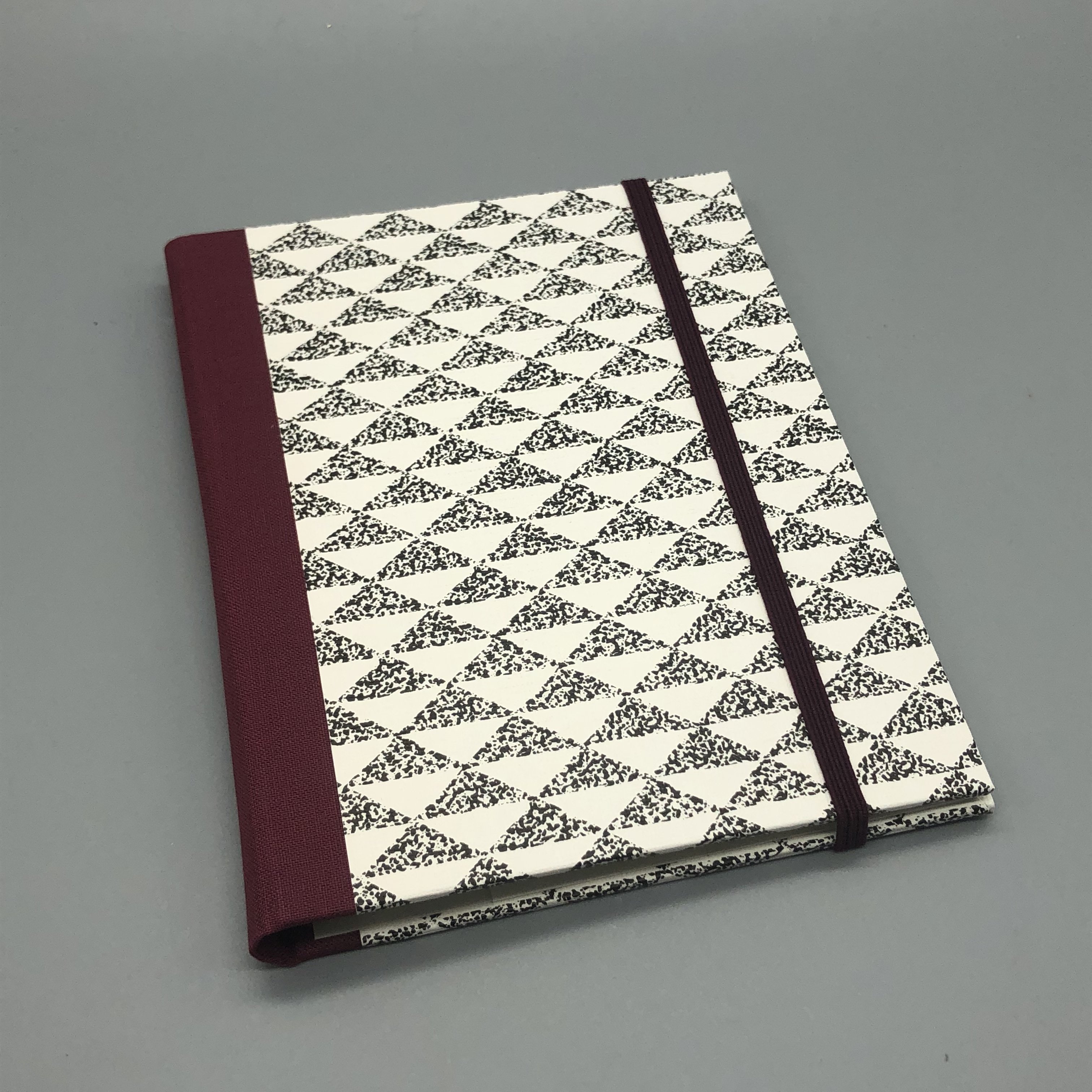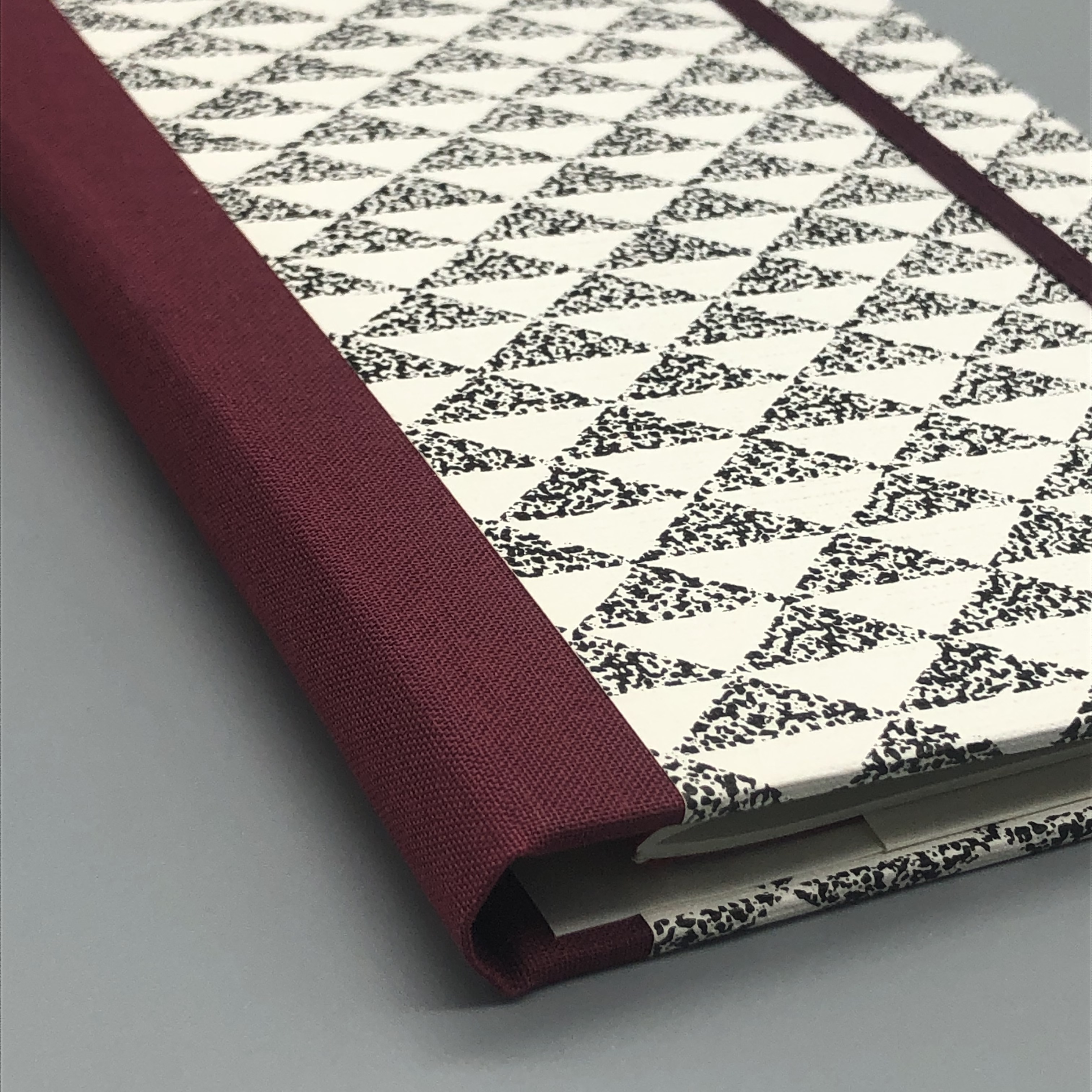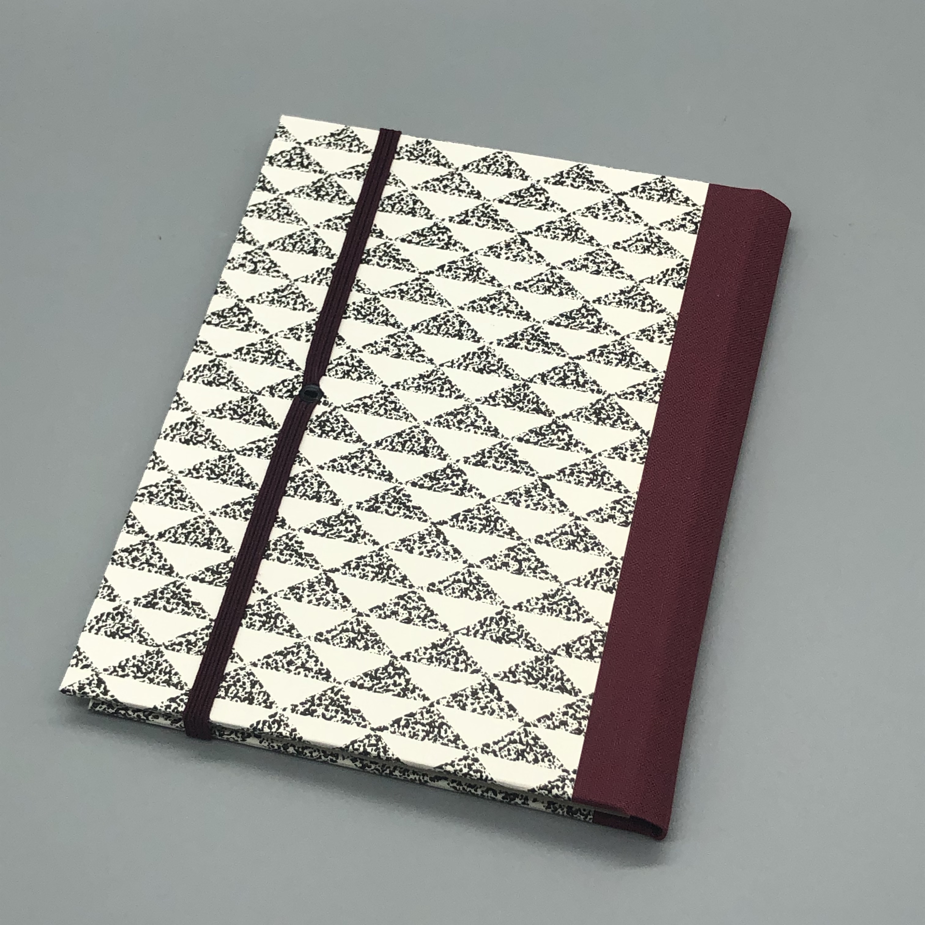 Die Hülle ist aus fester Graupappe gefertigt und hat einen leinengebundenen Rücken. In ihr findet ein Notizbuch im Format A6 Platz - oder jedes andere Heft bzw. Büchlein in entsprechender Größe. Der Rücken aus dunkelrotem Buchleinen bietet bis zu einem Zentimeter Platz, so dass auch stärkere Hefte oder flache Paperback-Bücher eingesteckt werden können. Das handliche Büchlein eignet sich also auch z.B. für Kalendarien oder die Losungen.