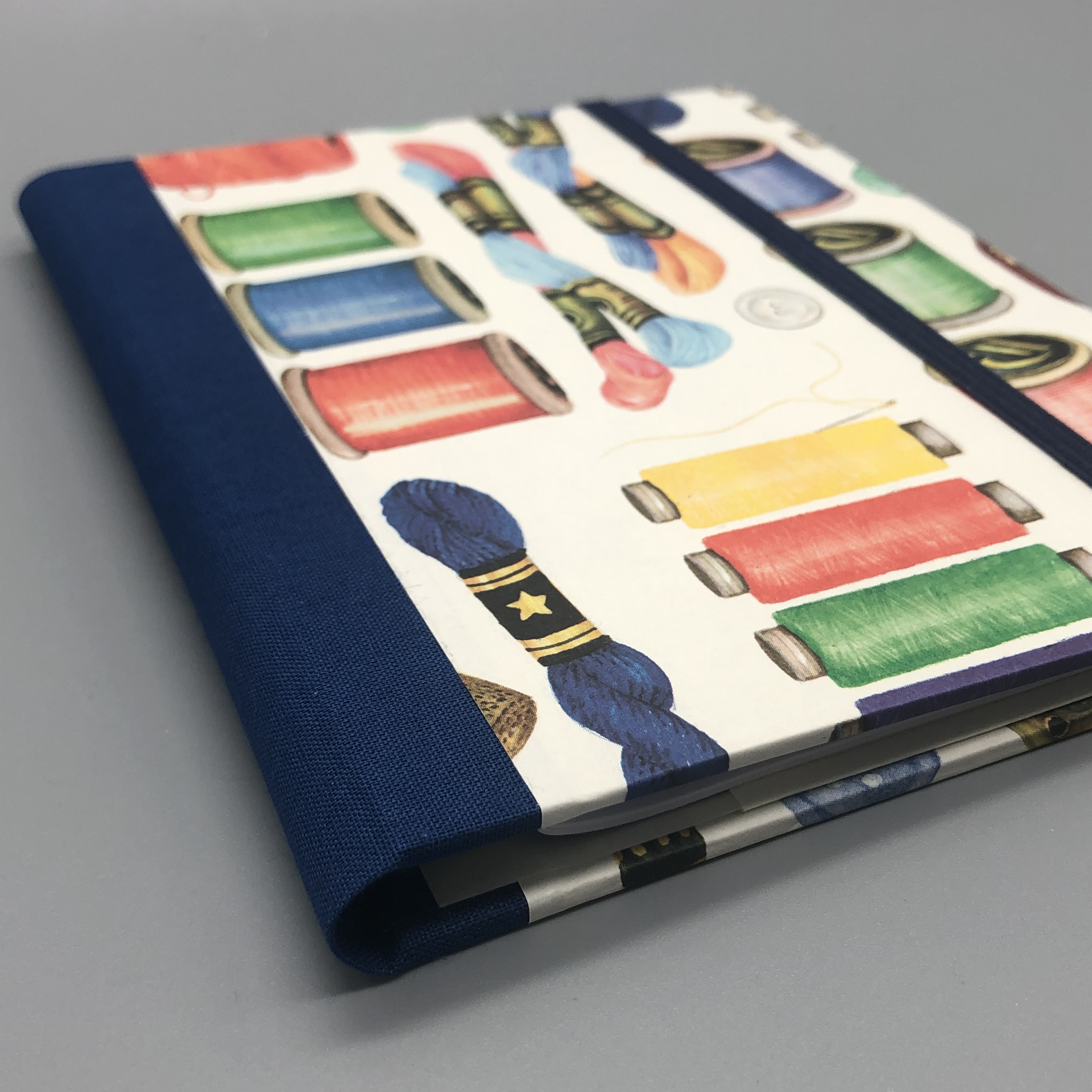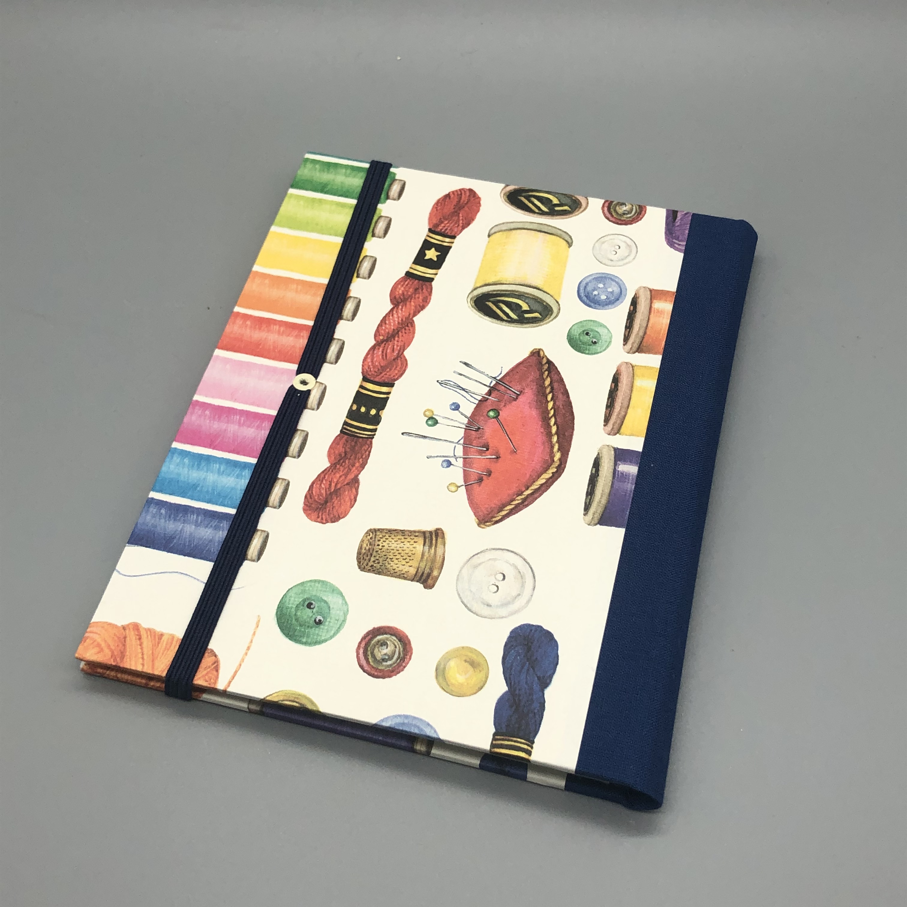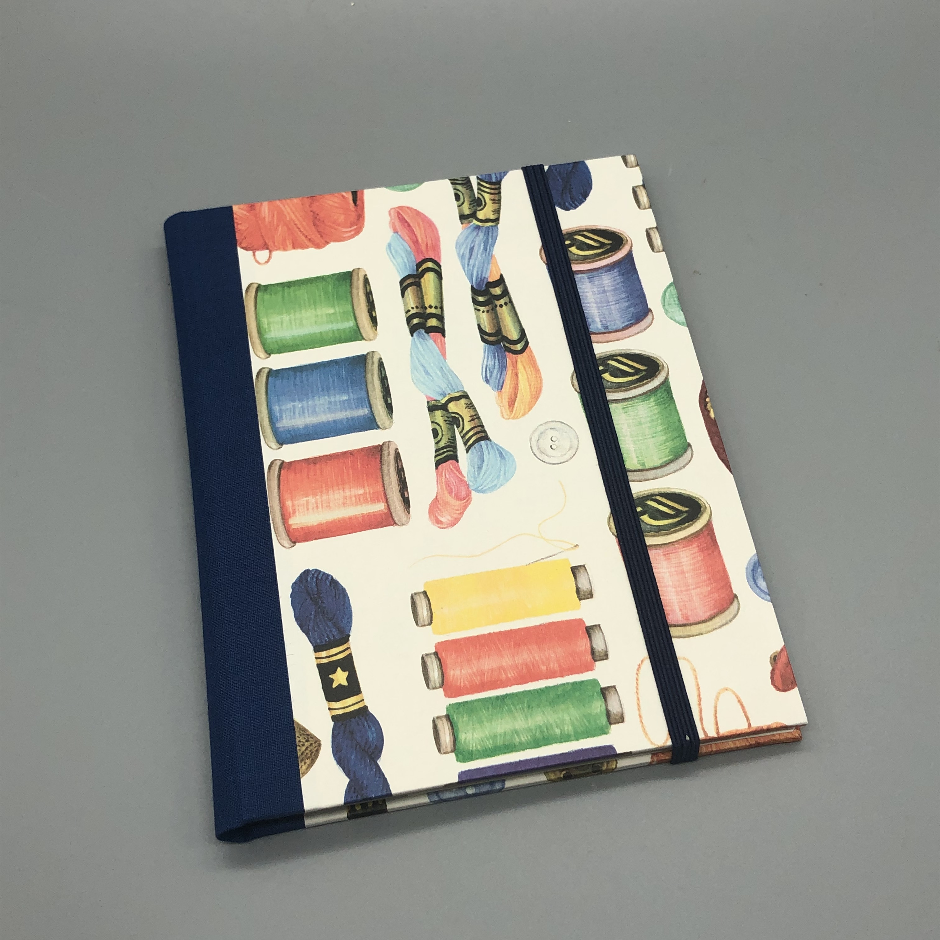 In diesem Notizbuch ist nachhaltig Platz für Deine Gedanken und Ideen! Du kannst hier alles notieren, was dir wichtig ist. Das Motiv mit Garnrollen und Knöpfen legt Notizen für Handarbeiten nahe.