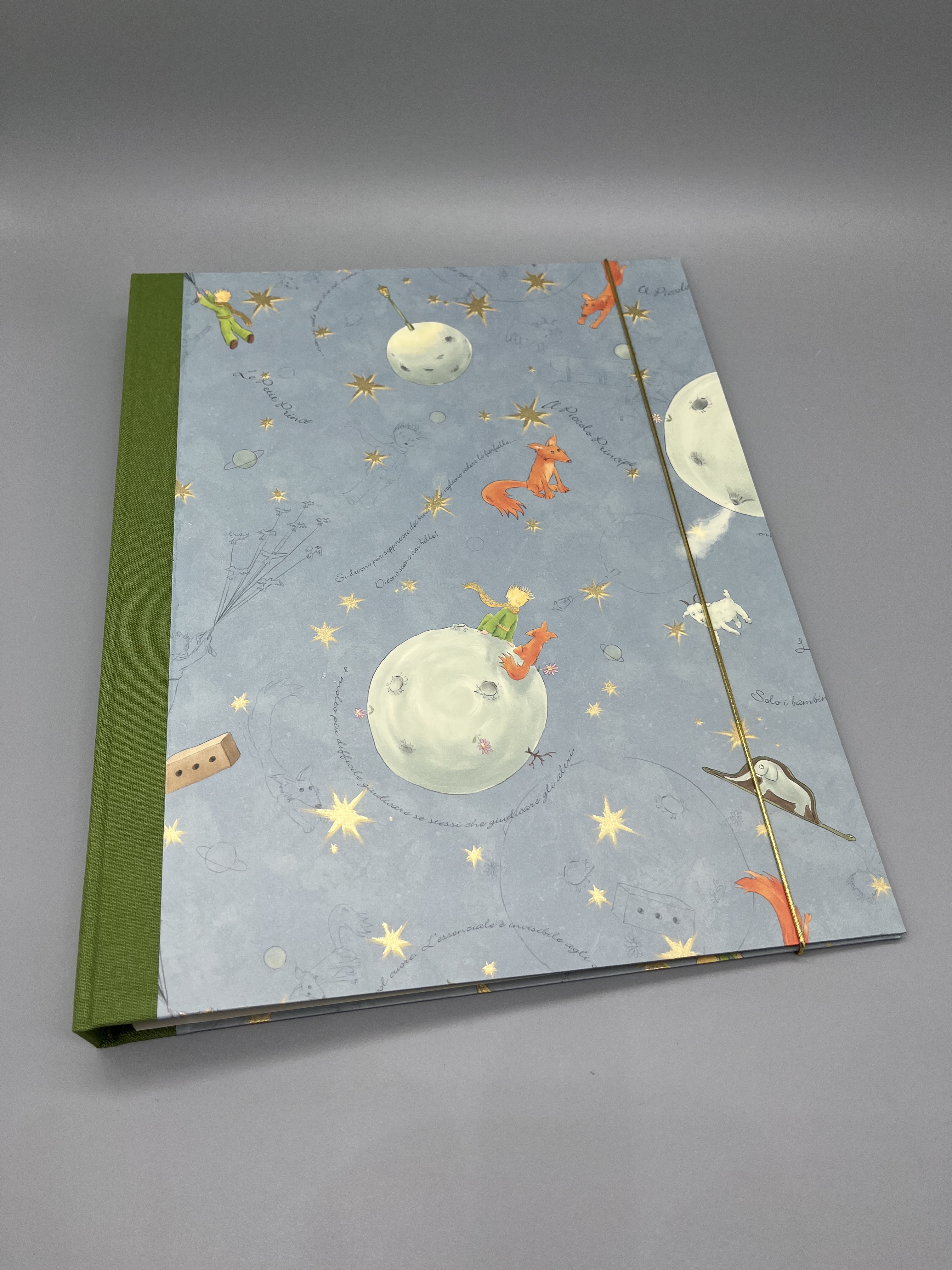 Praktischer Sammelordner für Rezepte, Fotos, Verse und alles, was sich in einem Buch sammeln lässt. Motive aus der Erzählung "Der kleine Prinz" von Antoine de Saint-Exupéry sind auf den Buchdeckeln zu sehen. Ein Golddruck verleiht allem edlen Glanz.
