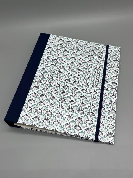 Ganz akurat sind die stilisierten Blüten auf diesem Ringbuch aufgereiht. So entsteht ein sehr geordnetes, fast vornehmes Bild, das den Ordner edel und klar aussehen lässt.