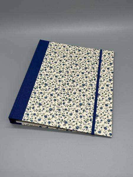 Bezogen ist der Ringordner A5 mit einem hochwertigen Geschenkpapier. Die Motive sind einmal Blaue Blümchen, einmal Landkarte Alpenvorland (Foto ist Beispielbild!).