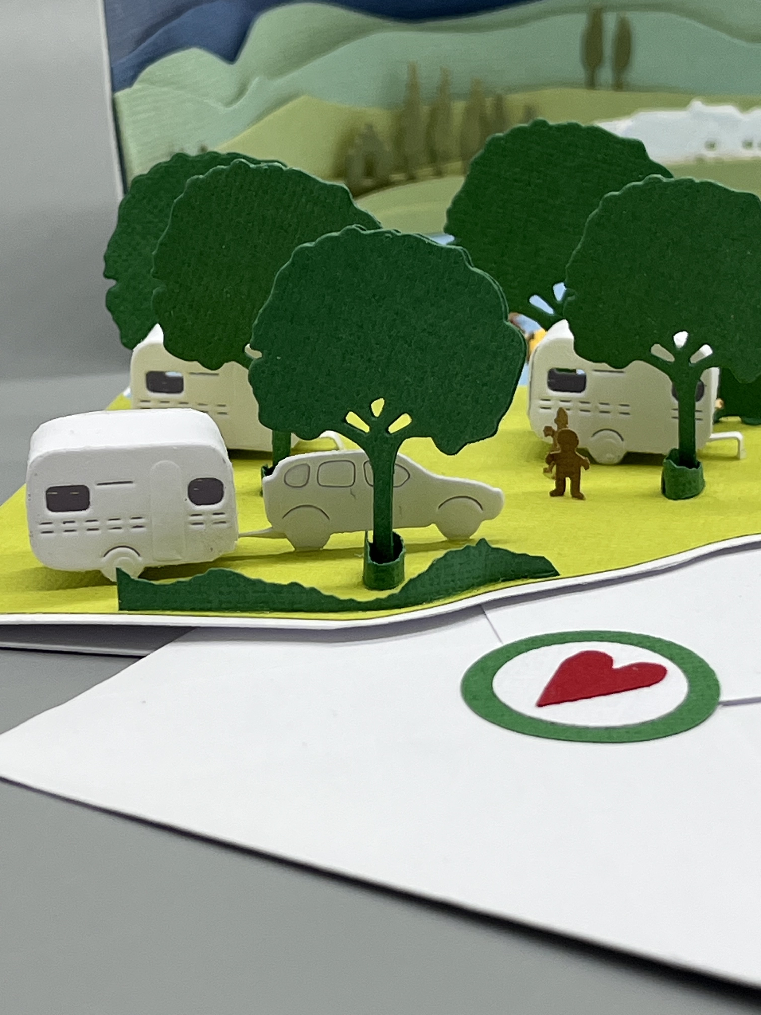 In den Steckfächern habe ich wunschgemäß einmal ein Kärtchen zum Beschriften und mit dem Namen des Campingplatzes untergebracht. In der anderen Seite steckt ein Kuvert mit dem Namen der Beschenkten.
