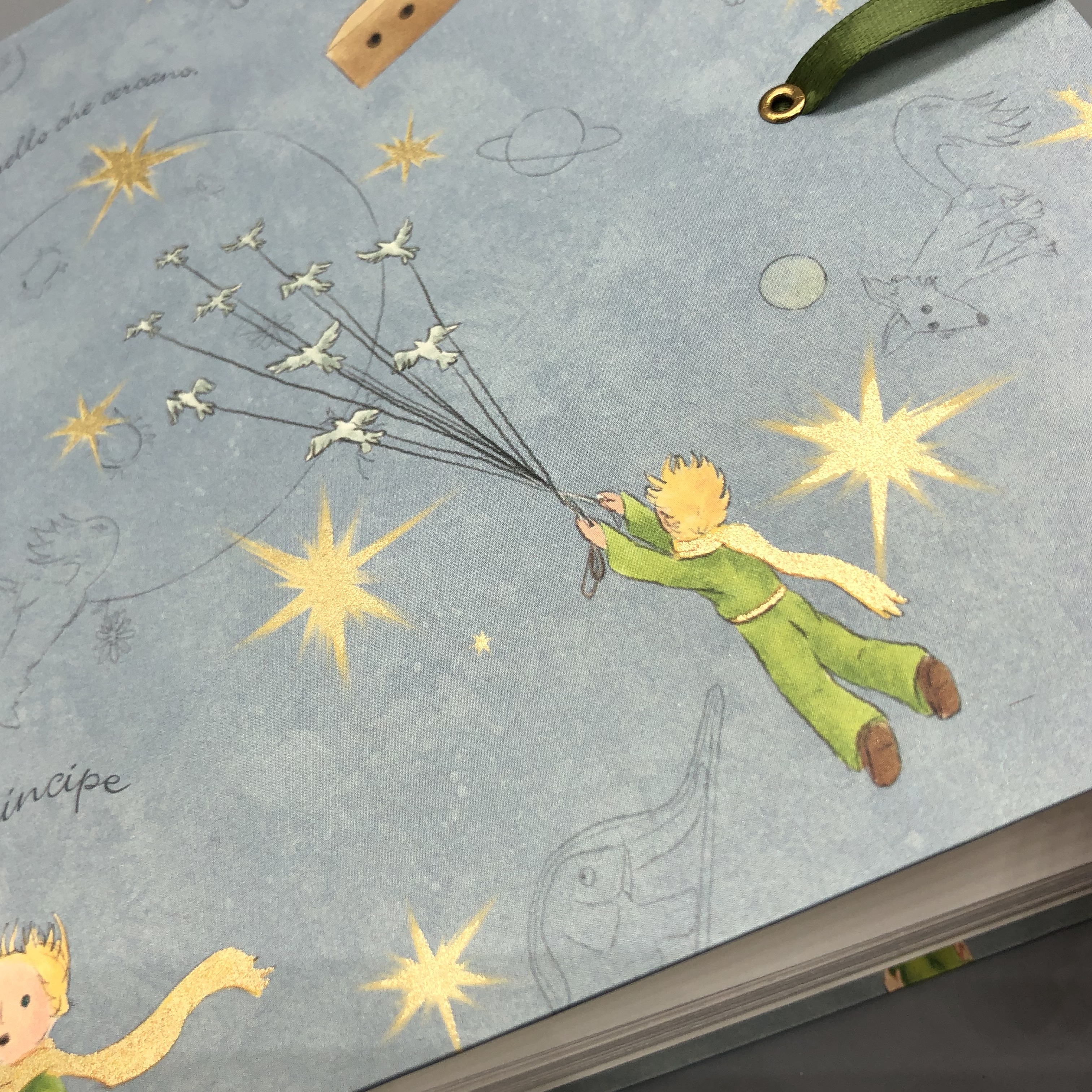 Dieses Geschenkpapier von Kartos erzählt eine Geschichte. Wer das Buch "Der kleine Prinz" von Antoine de Saint-Exupéry gelesen hat, wird die einzelnen Motive sicher wiedererkennen.Der dezente Golddruck, beispielsweise bei den Sternen, macht das Papier besonders edel. Die bunten Figuren auf blaugrauem Hintergrund sind auf glattem, cremefarbenem Papier im Offset-Verfahren gedruckt. Das Papier hat eine Stärke von 80g/qm.