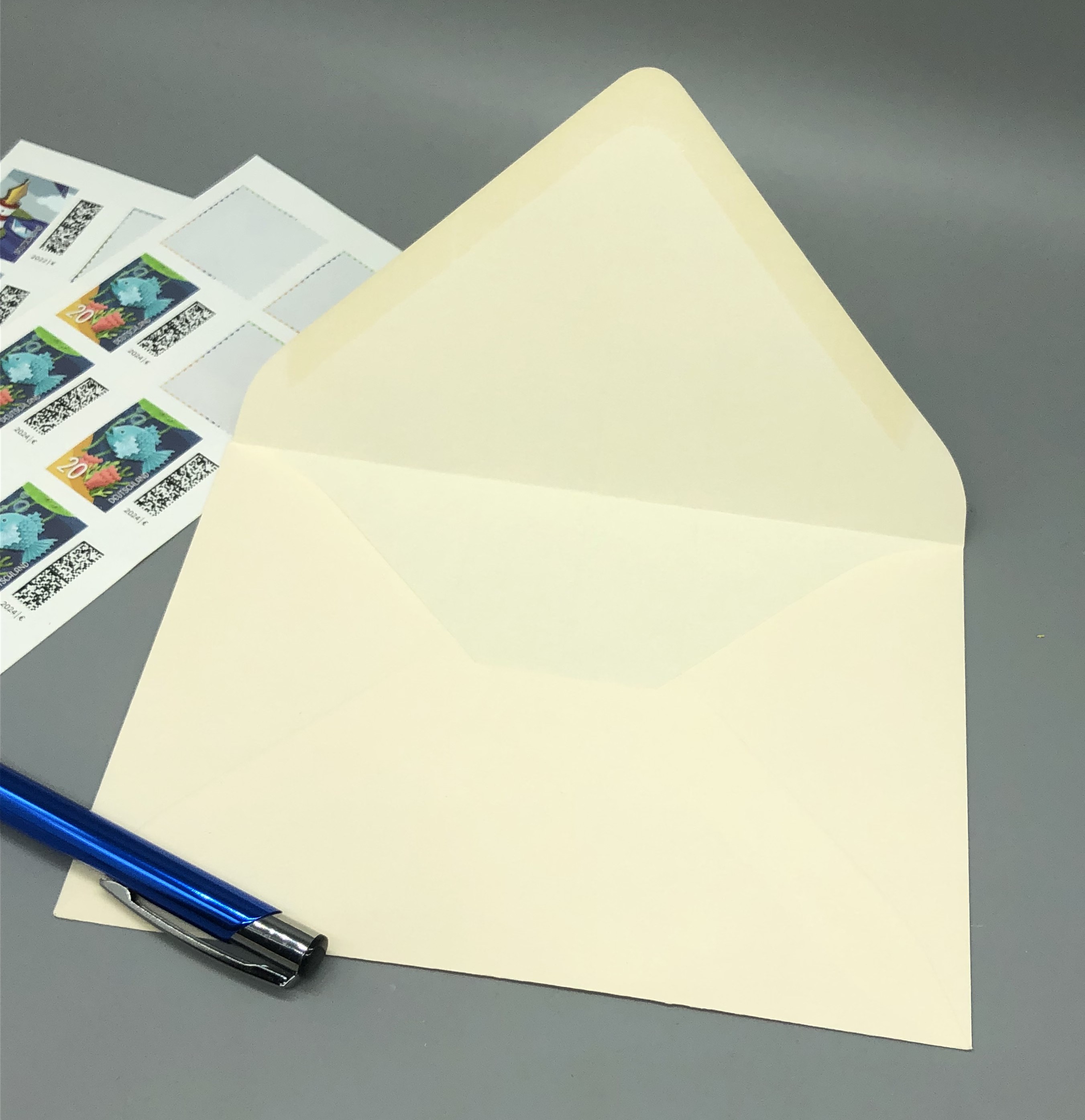 - Mit einem Format von 125 x 176 mm ist das Kuvert etwas größer als üblich, aber noch im Bereich für Standardporto.