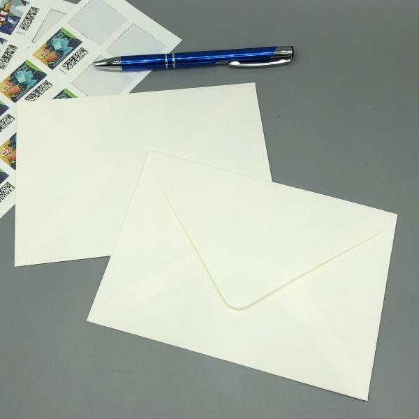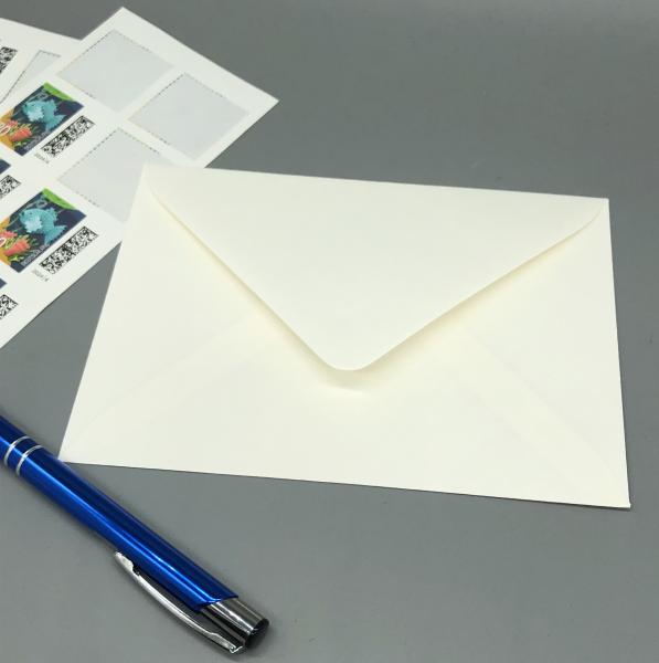 Edle Kuverts in weichem Weiß, nassklebend und ungefüttert.