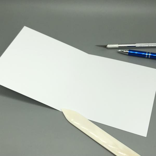 Die weißen Rohlinge sind aus 250-Gramm-Karton hergestellt.Format der gefalteten Karte: 12,5 x 12,5 cm (5" x 5"). Du bekommst aber den ungefalteten Bogen mit eingeprägtem Mittelfalz.